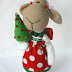 Наконец, я вроде бы все собрала, упаковала, чтобы утром нести посылку на почту. И тут накануне вечером читаю у Ирины в блоге пост-отчет о том, как она сама готовила подарок. И до меня доходит, что рукодельная игрушка должна быть НА елку, а у меня овечка-то хоть и не крупная барышня, но на елку ее явно не повесишь - повалит дерево. Мучалась в раздумьях весь вечер. А потом, уложила Герку спать, и сшила для елочки елочку. Подарок распаковала и добавила игрушку к Овечке.
